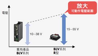 放大可動作電壓範圍 電池電源更容易使用 電池電壓降低時也可動作。